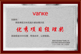 2019年荣获万科花溪项目优秀项目部奖