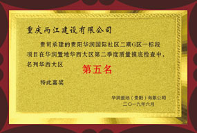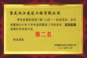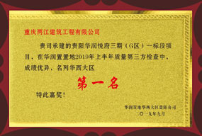 2019年荣获华润置地华西大区实测实量成绩第二名